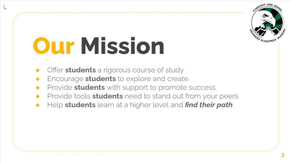 Flagstaff Unified School District was named to the College Board's 5th Annual AP District Honor Roll. We are one of only three districts in Arizona to receive that award for increasing the number AP course offerings, percentage of students earning 3 or above on AP exams, and increasing access to AP courses for underserved minority populations.