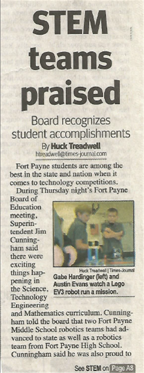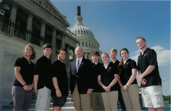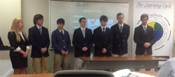 This group, "The Fort Payne Seven," is composed of a team of students working together each year to solve the Real World Design Challenge. The challenge is engineering based and requires students to design an Unmanned Aerial Vehicle (UAV) to accomplish a given task.
