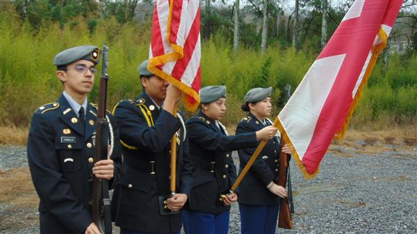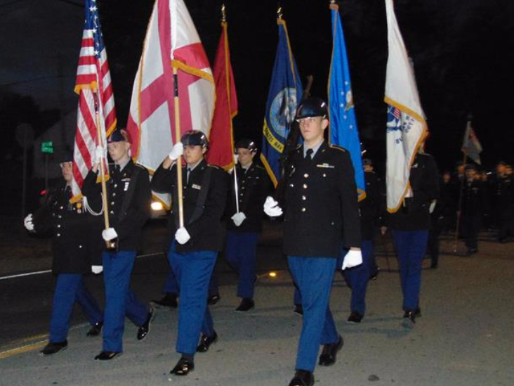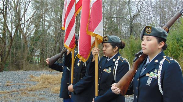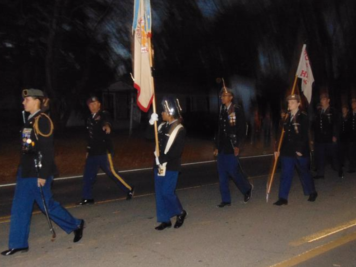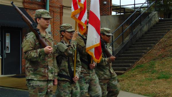 The Color Guard consists of a group of four to ten cadets who carry the US and Alabama flags, the battalion colors, the five military service flags, along with two rifles. Color Guard is expected to present the colors at home football games, parades, and public events held by local organizations.