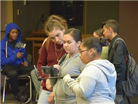 Students at the high school had the opportunity to experience augmented reality by participating in the Google Expeditions Pioneer Program. Using smartphones provided by a representative of Google, students learned about the integration of digital information with the user's environment in "real time" by viewing and studying images that appeared all over the Distance Learning Center through their smartphones. Students worked in groups under the direction of their teachers to familiarize themselves with these elements of augmented reality.