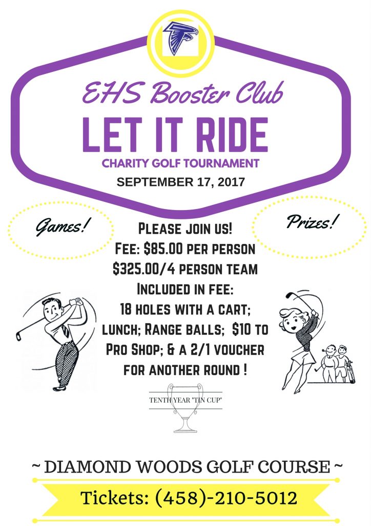 The EHS Booster Club invites you to attend their 10th annual Charity Golf Tournament. This is the Booster Club’s biggest fundraiser of the year! Proceeds from this event will support our student athletes with scholarships, equipment, uniform needs and much much more!