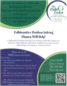 The Child Center is presenting a series of four classes for parents on collaborative problem solving. Collaborative problem solving is an exciting model that teaches you and your child skills that will reduce meltdowns, increase positive relationships, and improve communications.