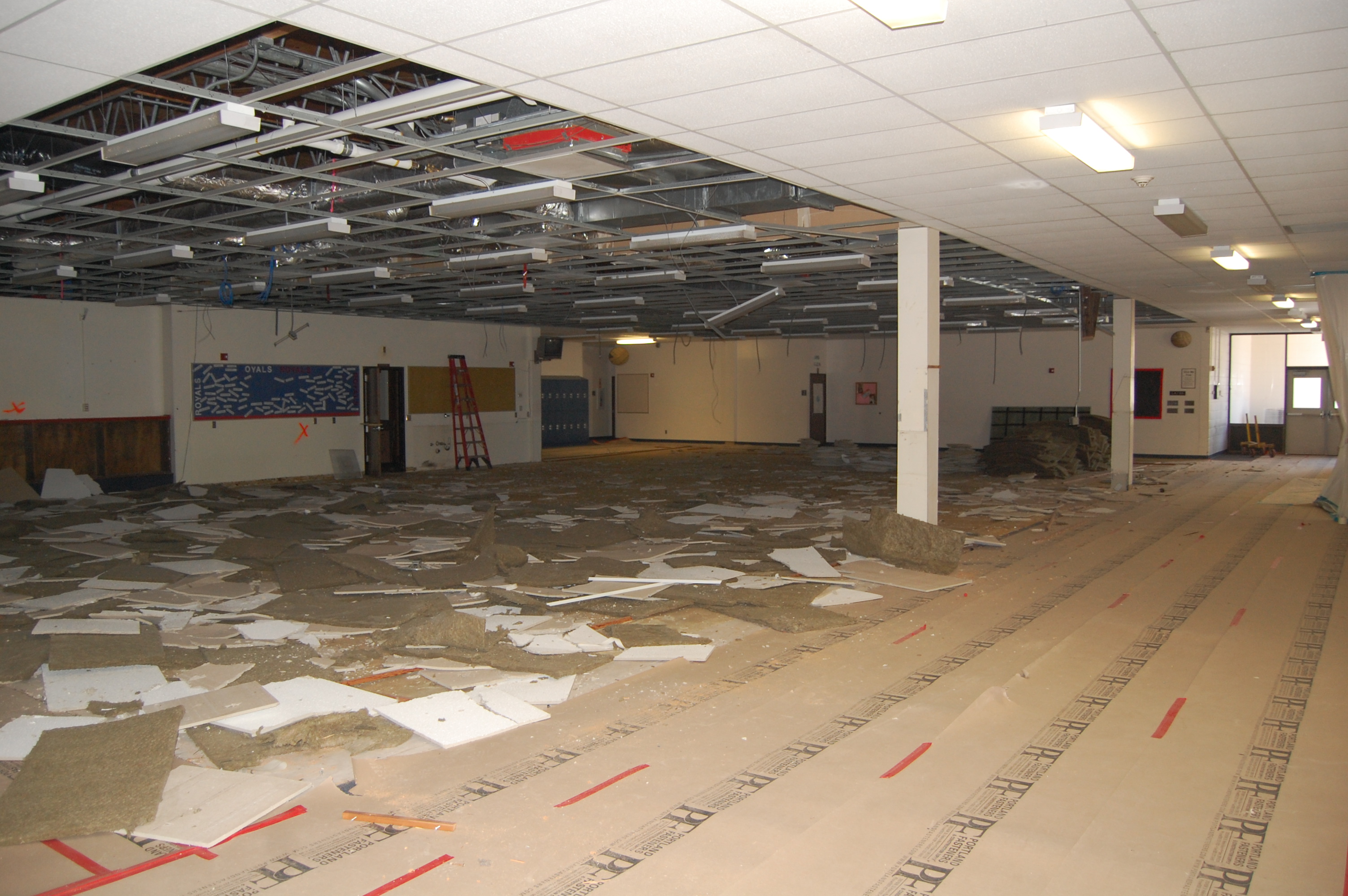 After nine weeks of construction, the project is taking shape and on track for the students return on September 8th. With most of the drywall work behind us, and the paint and ceiling work progressing, the school is starting to look like what the final product will be. The creation of the media center will enhance the students learning environment, while moving the administration area to the front of the building will increase safety, building functionality, and add new look to the main entry. All summer school projects have hurdles to overcome, and the general contractor, John Hyland Construction, has met these challenges head on and kept us on schedule.