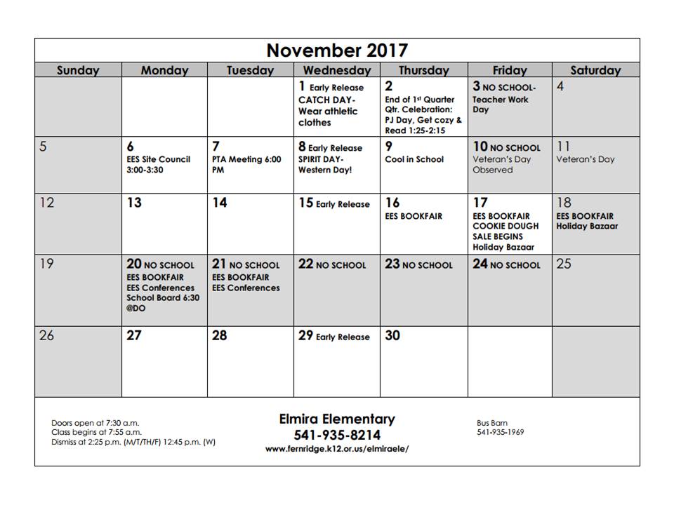 November calendars will be coming home soon! In case you can’t wait to see all of our upcoming events, here is an electronic version : )