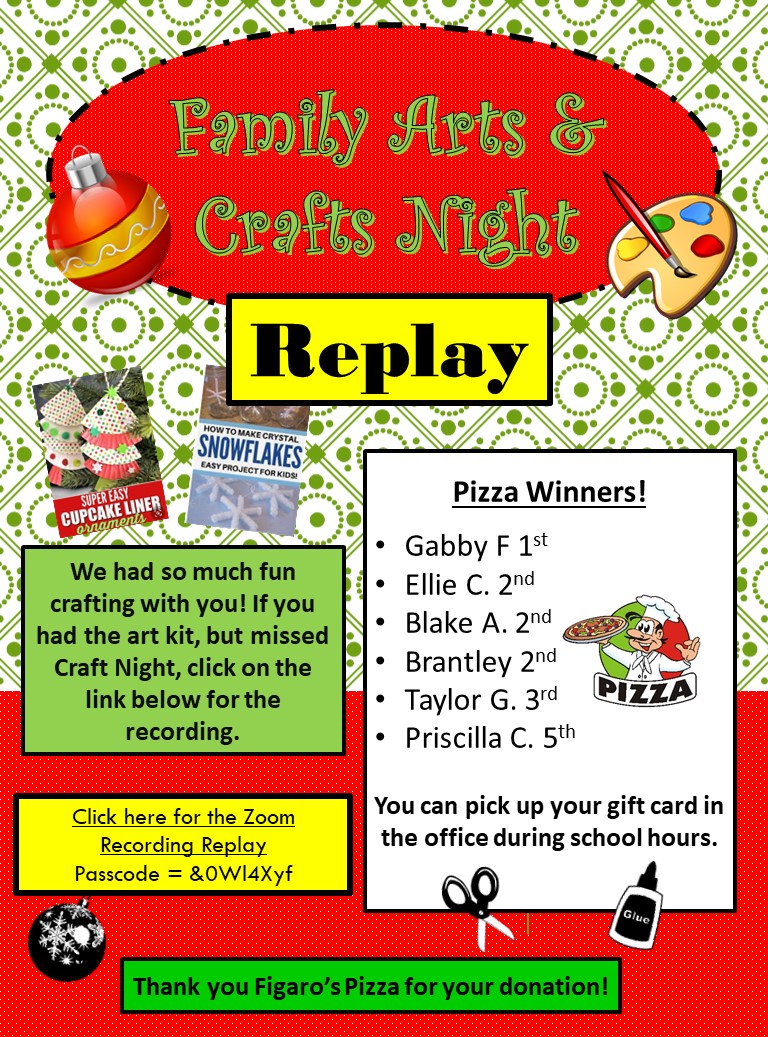 Tomorrow is our Virtual Family Arts and Crafts Night! We have a few more craft kits available for pick up at Elmira Elementary!
