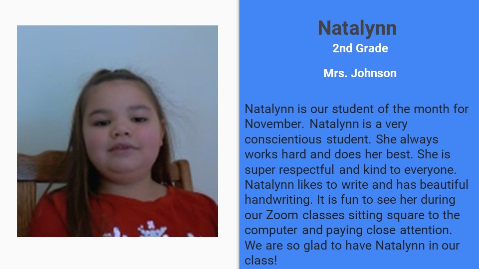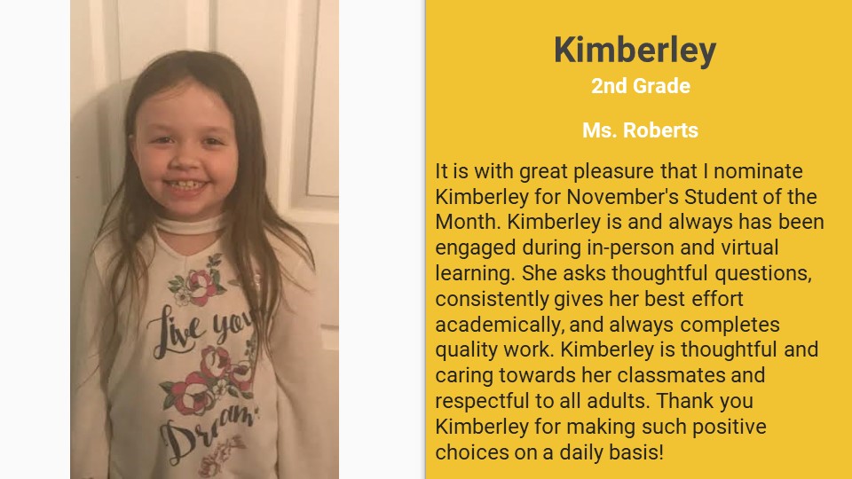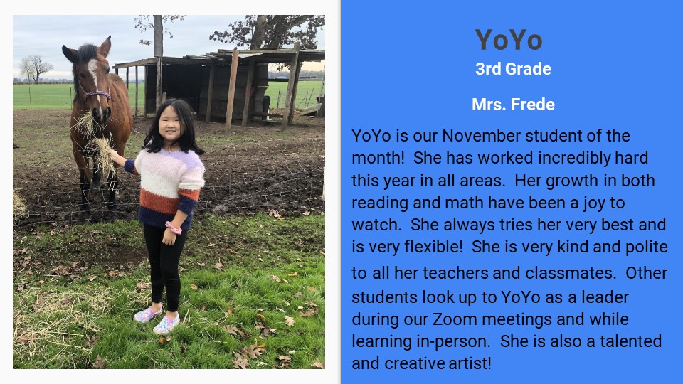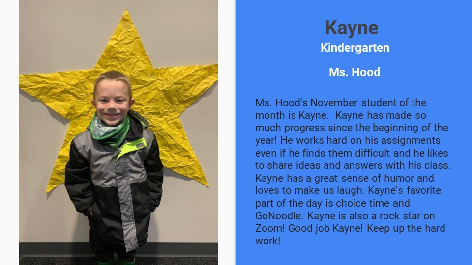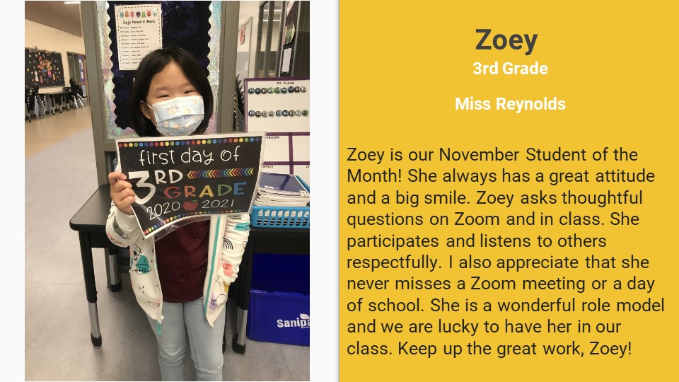 As our unpredictable year in education continues, we are happy to announce that we are seeing our EES students do some pretty amazing things in the CDL World. Congratulations to our students who earned NOVEMBER STUDENT OF THE MONTH! Thank you to our teachers for recognizing students who are working hard and making growth despite these challenging times and that you to our families for supporting your children the best you can during this pandemic.