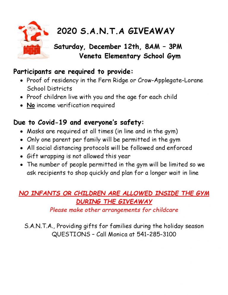 Beginning Dec 1st, all K-5 students in the Fern Ridge School District will be engaged in full Comprehensive Distance Learning (CDL) due to rising concerns surrounding Covid 19. There will be no Limited In Person Instruction (LIPI) during December, with a decision regarding the continuation of a full CDL schedule in January to be decided by the end of Winter Break. The CDL schedule during December will be as follows: