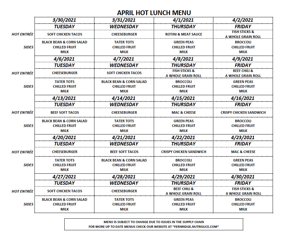 April Lunch Calendar Published April 5, 2021 APR_21_HOT_GG_CALENDAR_ELEMENTARY Leave a Reply Cancel replyYou must be logged in to post a comment.