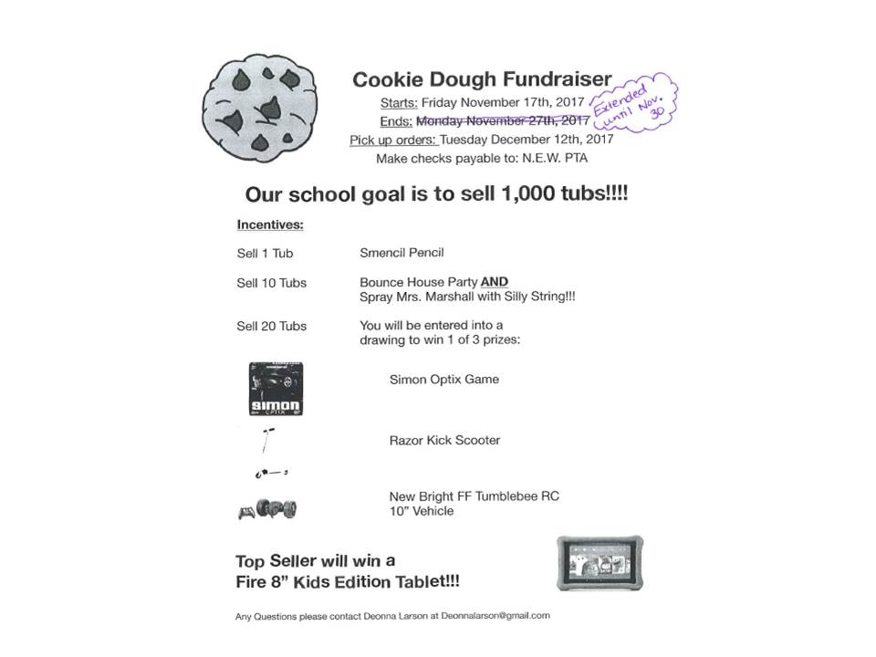 Cookie Dough Orders Don’t forget! Cookie Dough Pick Up – Tuesday, Dec 12, 2:30 – 6:30, EES Gym!! ***Any orders NOT picked up will be donated!***