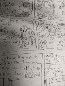 We want to celebrate the work of future graphic novel and comic book artist Jack Reid. Jack is a 6th grade student at FRMS. He has been drawing his own comics since he was in 2nd grade.