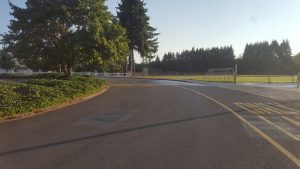 Here is the crosswalk students will use after getting out of the car at the drop off point. This crosswalk has been repainted and broadened to ensure student safety in crossing in front of buses.