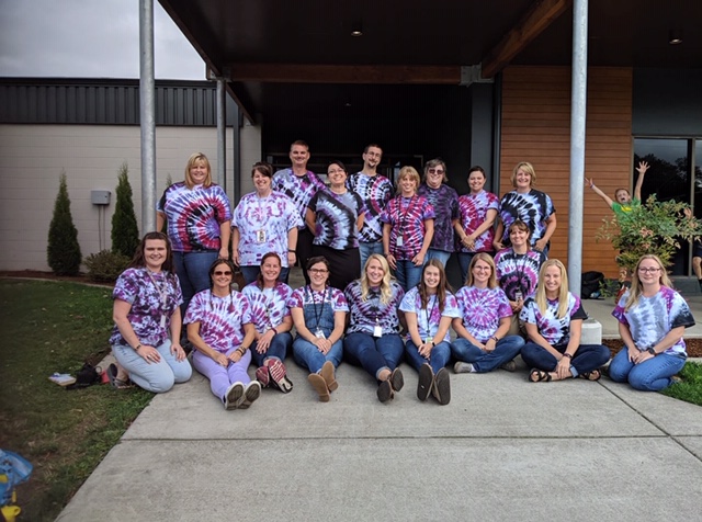 The VES staff took part in a fun team building experience last week, thanks to Tiana Povenmire-Kirk, our very own Fern Ridge School District School Board member. Tiana and her children taught our staff how to fold, tie, and dye shirts so we could all have fun VES spirit shirts to wear this year. Thanks to Tiana and thanks to the awesome staff at Veneta Elementary for showing us your creative side!