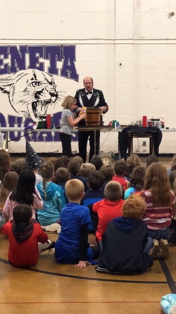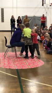PALS held a magic show assembly this morning for meeting our school goal in the Jog-A-Thon. It was SO FUN! Lots of students got called up to help with tricks and the assembly ended with Mrs. Leatham getting a pie in the face by our top earner, Sullivan Kirk!