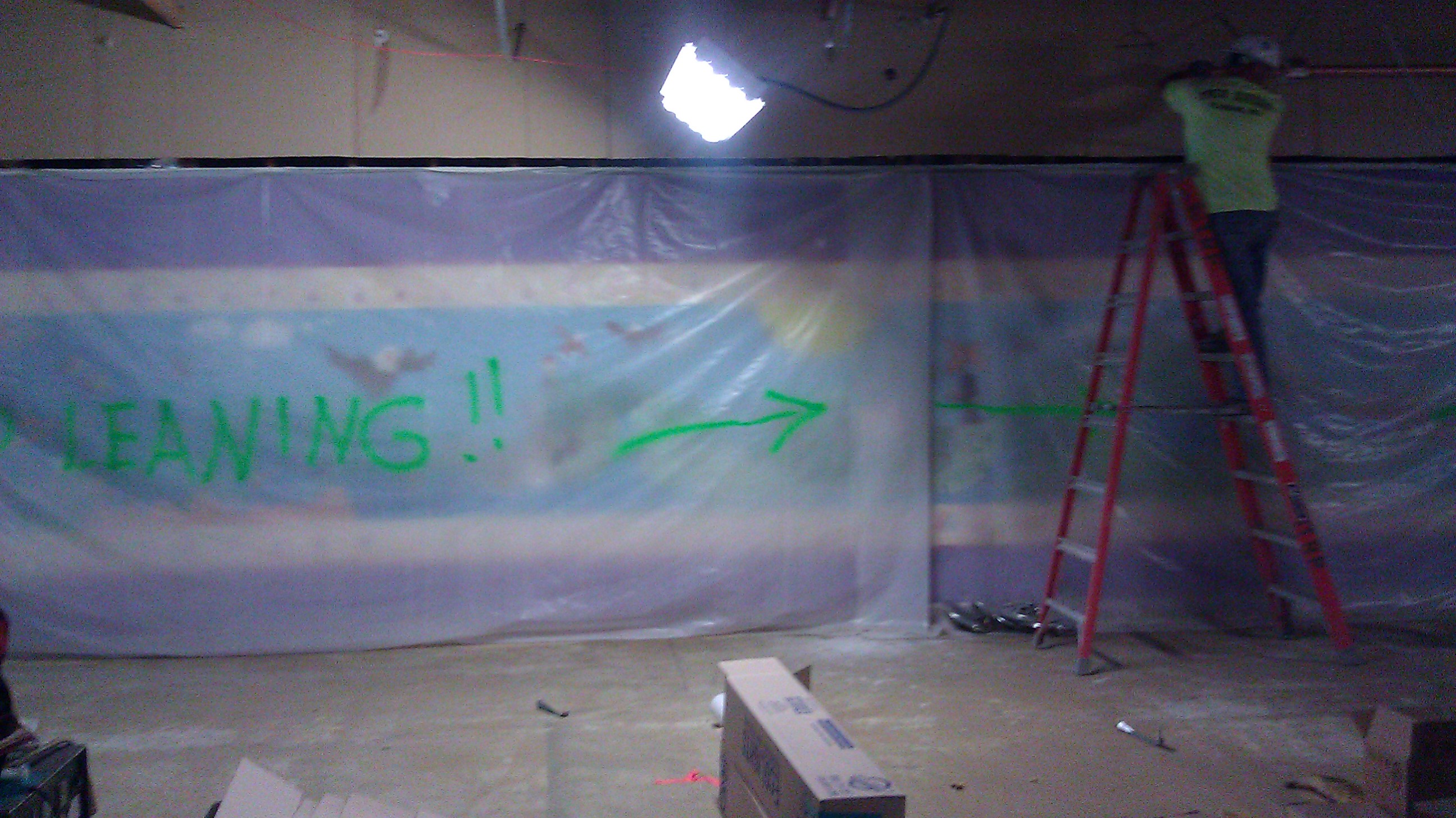 I wanted to share with you the latest photos of our school under construction this summer. All of the construction workers have been doing a great job. Walls have been torn down in the office area, the storage room has been removed to make space for the new cafeteria, and they are digging outside of Room 3 in preparation for the new building. I was able to put on a hard hat this afternoon and see the progress for myself. Read on to see photos of what lies behind the fence…..
