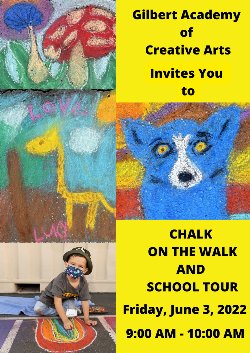 New families to Gilbert are welcome to come to our Chalk on the Walk event. We will also tour the school.