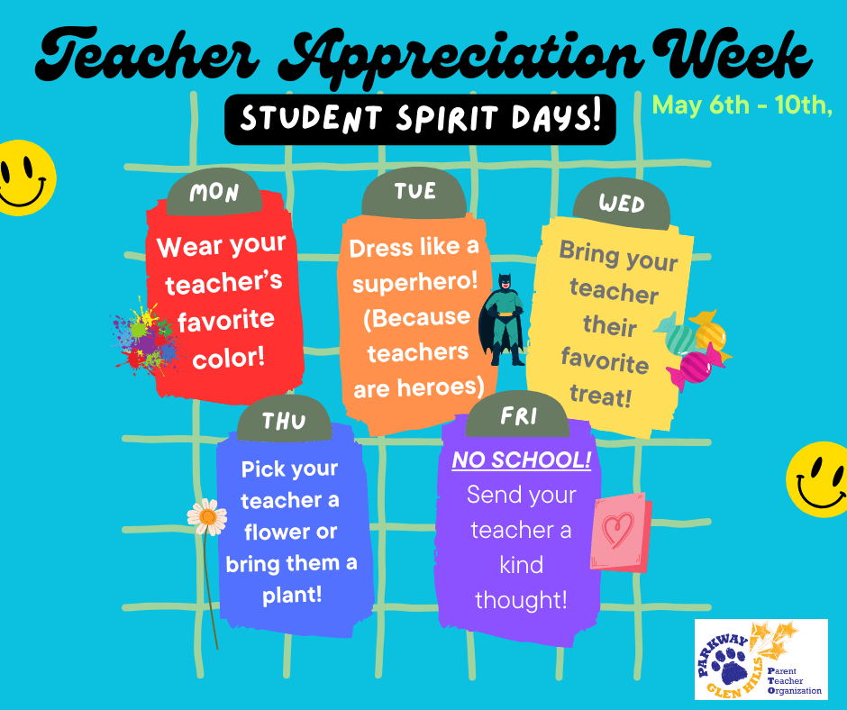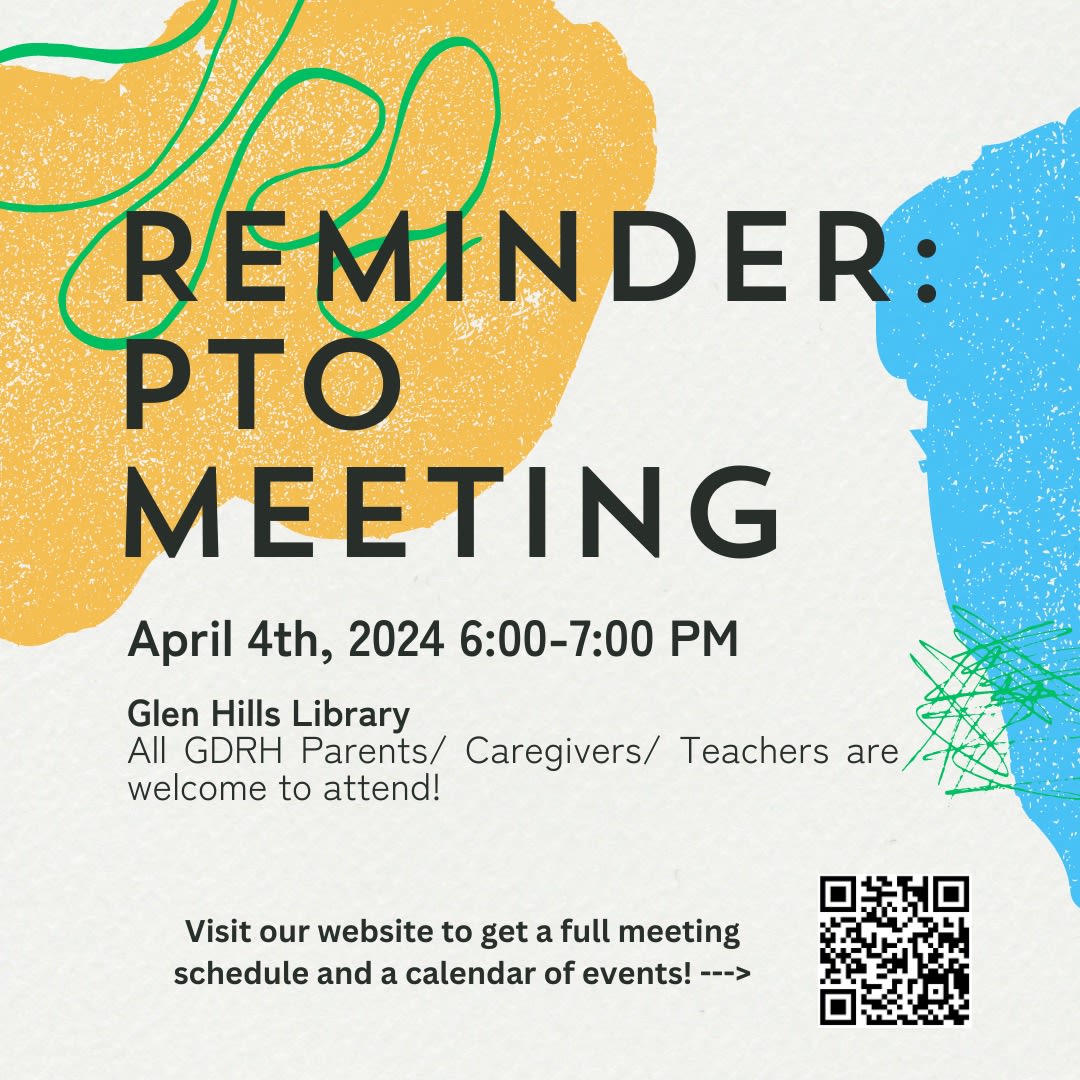 - PTO Elections info for May 8 mtg in Glen Hills Library at 6pm