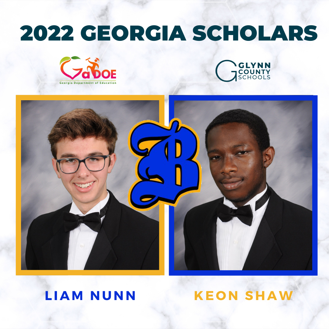 Of that total, two students in Glynn County Schools were named. They include Brunswick High seniors Liam Nunn and Keon Shaw. Through the Georgia Scholar program, the Georgia Department of Education identifies and honors high school seniors who have achieved excellence in school and community life. Students eligible for Georgia Scholar recognition are high school seniors who exhibit excellence in all phases of school life, in community activities, and in the home.