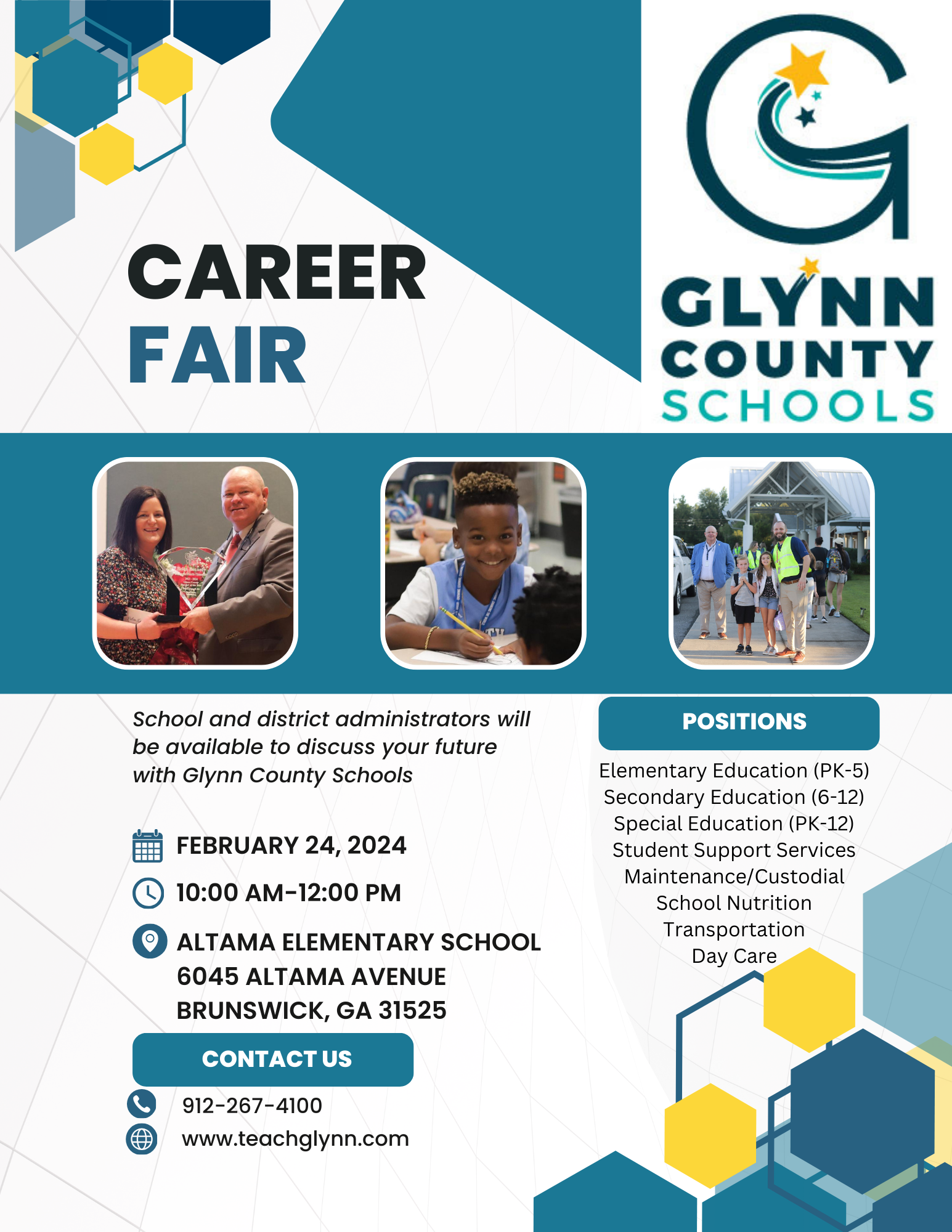 We will be holding a Career Fair from 10 a.m. to 12 p.m. Saturday, Feb. 24 at Altama Elementary School, 6045 Altama Ave. Hiring positions include:
