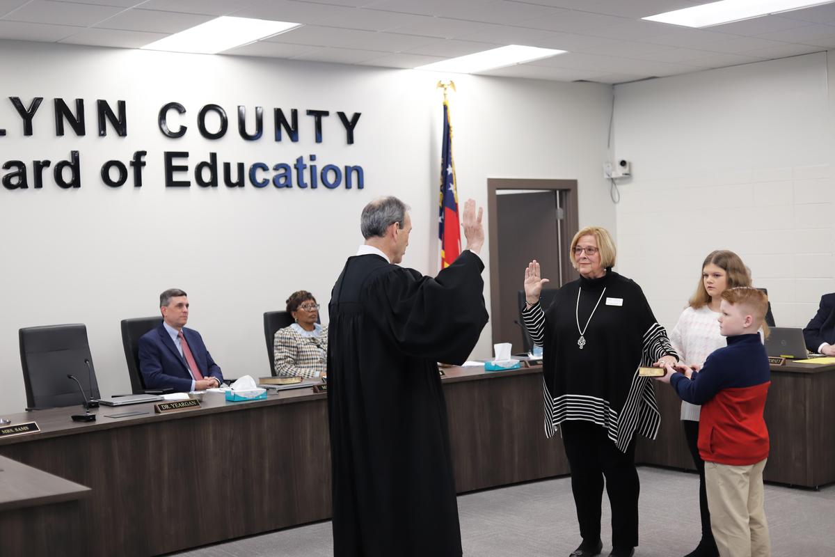 On Thursday, Jan. 9, Glynn County School Board members were officially sworn in by Judge Stephen Kelley, marking the beginning of a new year. The ceremony included returning board members Audrey Gibbons and John Madala, along with newly elected members Jeff Dodgen and Susan Lee. Mr. Dodgen takes over the District 1 seat from Marcus Edgy, while Mrs. Lee succeeds Jerry Mancil for the At Large Post 2 position.