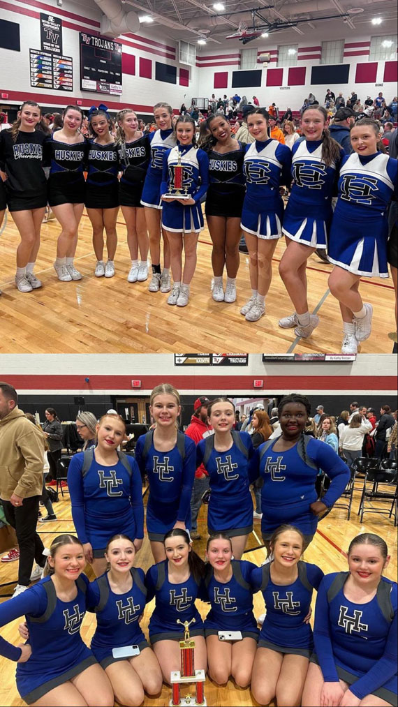 On Sunday, November 10, the high school and junior high competition cheer teams traveled to Tusky Valley High School. The junior high non-tumble placed 1st, while the junior high gameday team placed 3rd. The high school Gameday placed 2nd, and the high school traditional placed 8th. Great job!