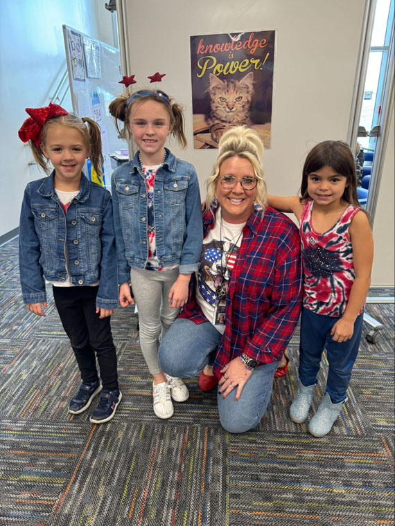 Mrs. McAfee and a few students were celebrating Veterans Day by wearing Red, White, and Blue!