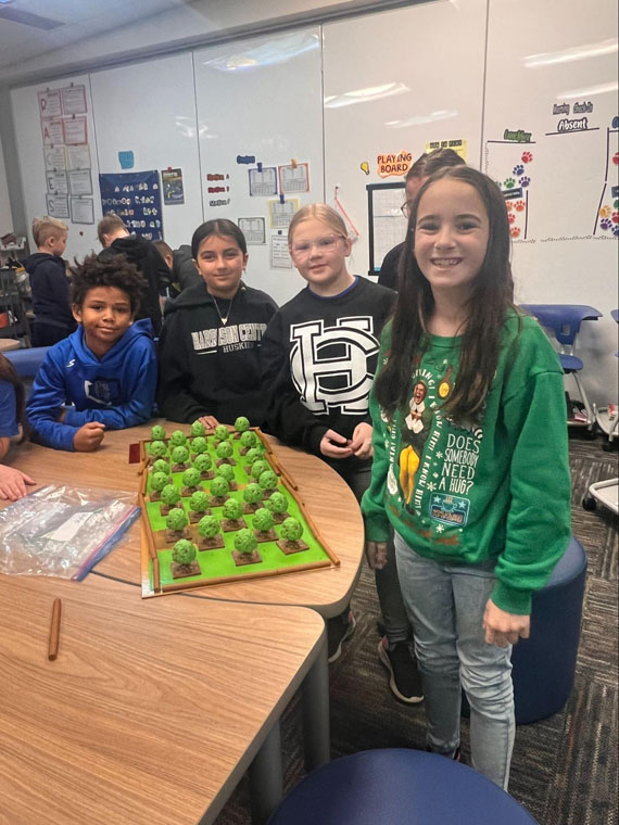 Mrs. Agostini’s 4th grade science class had a STEM project to build a fence to keep the apple trees in and have as many as they could. Students also had to build a wagon for Paul Bunyan and a cart for John Henry and his rocks.