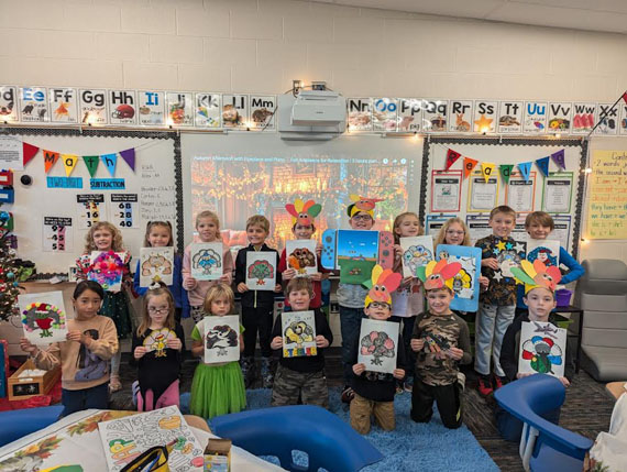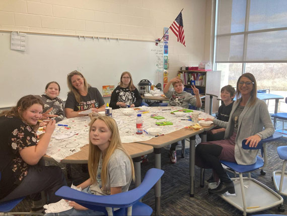 Mrs. Steele and her 5th grade students were joined by Ms. Sedgmer and are shown proudly sharing in their Thanksgiving meal that they prepared and served. As part of the lesson, each student wrote a paragraph highlighting what they are grateful for.