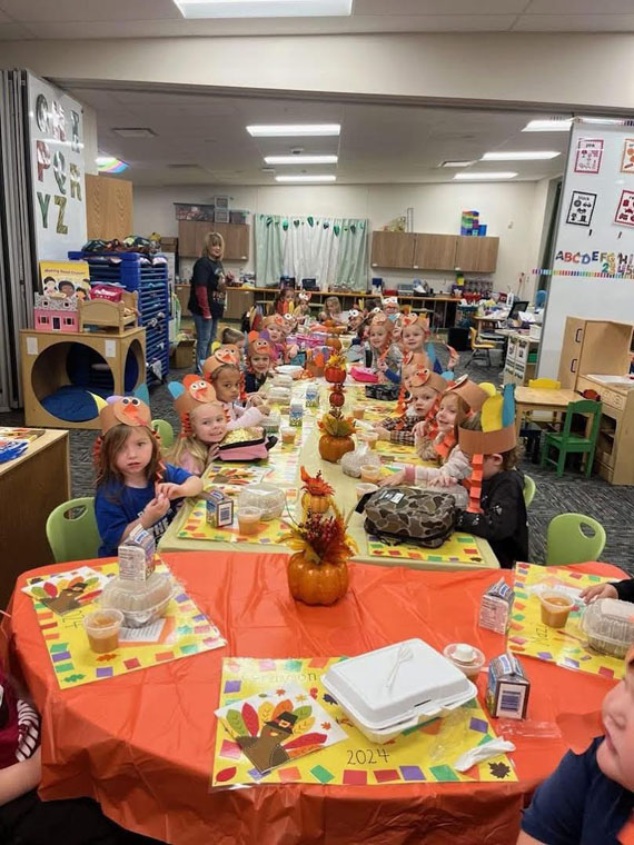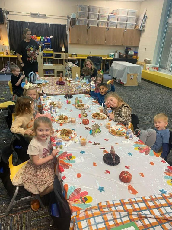 Some of our preschoolers celebrated Friendsgiving, complete with turkey and all the trimmings. What a fun and yummy time!