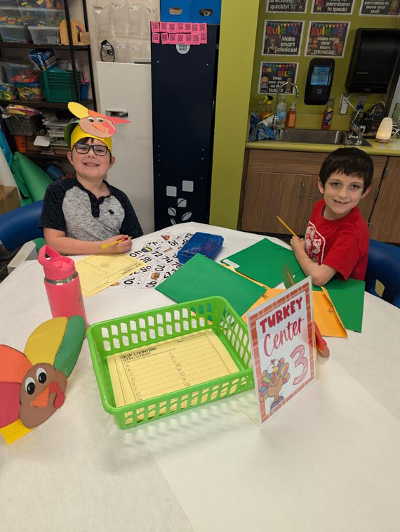 Mrs. Turner’s 2nd grade class disguised turkeys to keep them safe from Thanksgiving and had Turkey Centers to have extra fun learning!