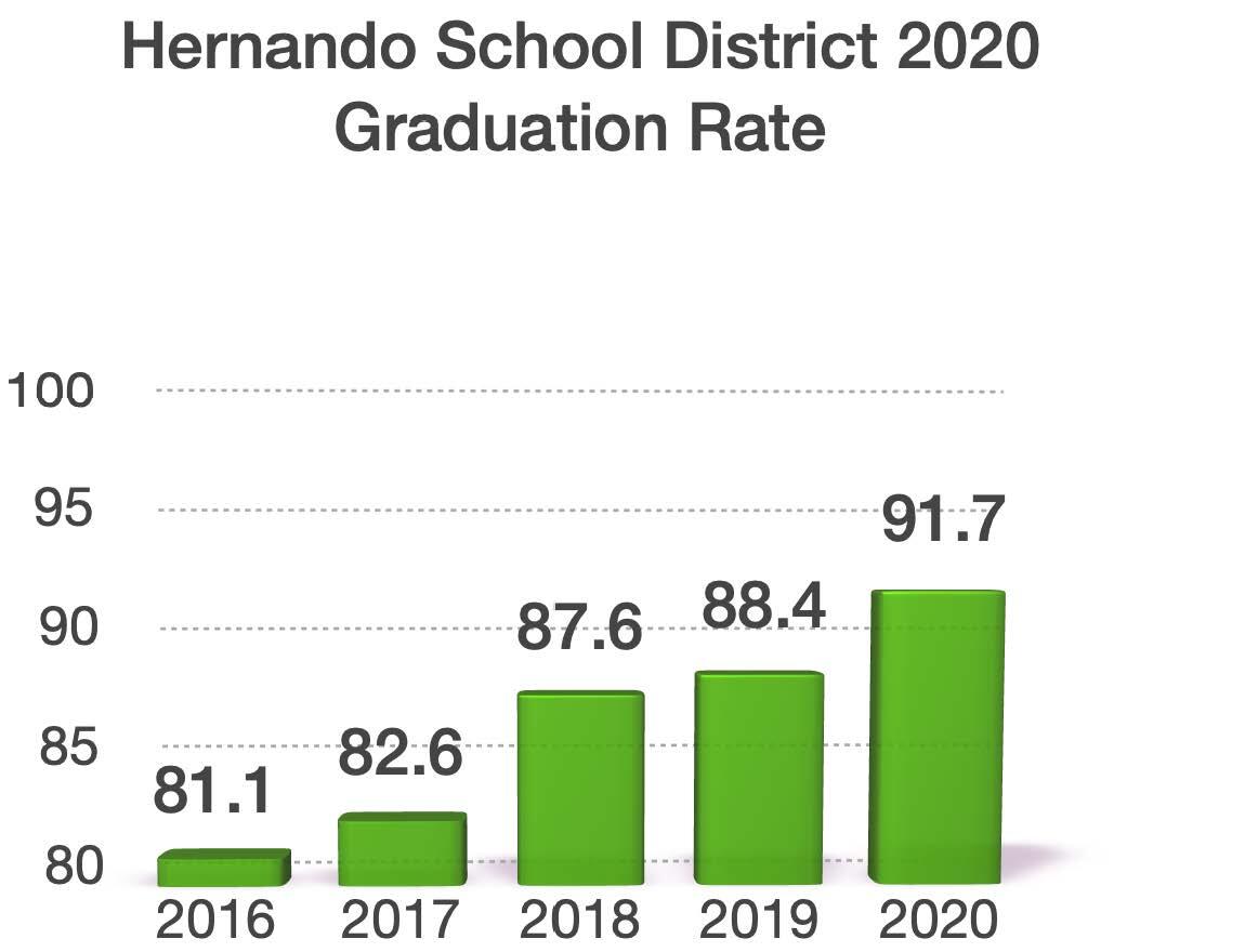 Florida Department of Education, the 2020 graduation rate for Hernando School District is 91.7%, an