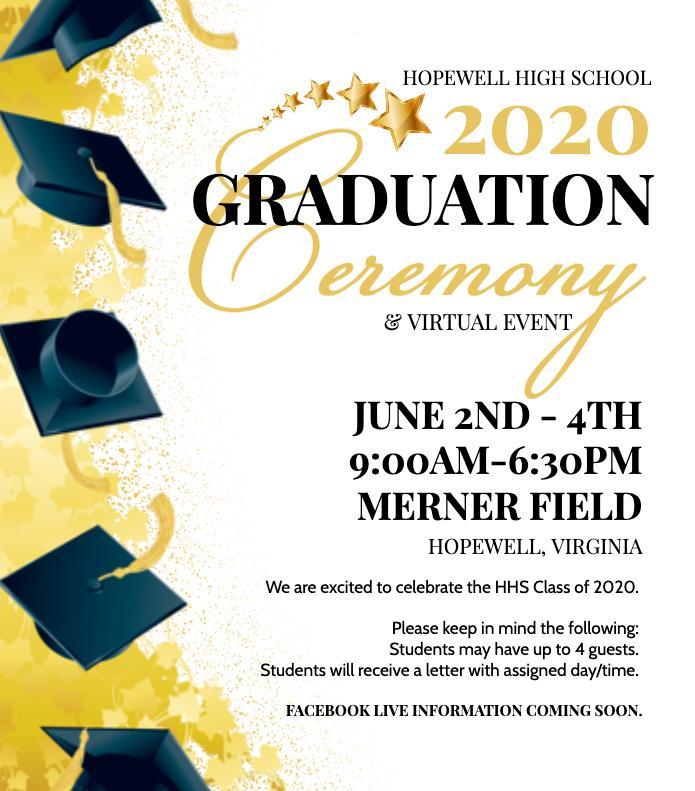 HHS graduation plans are official! Seniors will graduate on June 2-4th by last names with culminating celebrations the week before. Each senior is allowed up to 4 people. Congratulations to the Class of 2020 Valedictorian (Christian Cowden) and Salutatorian (Mallory Davis)! Graduation will be streamed live on Facebook for those who would like to celebrate with their senior.