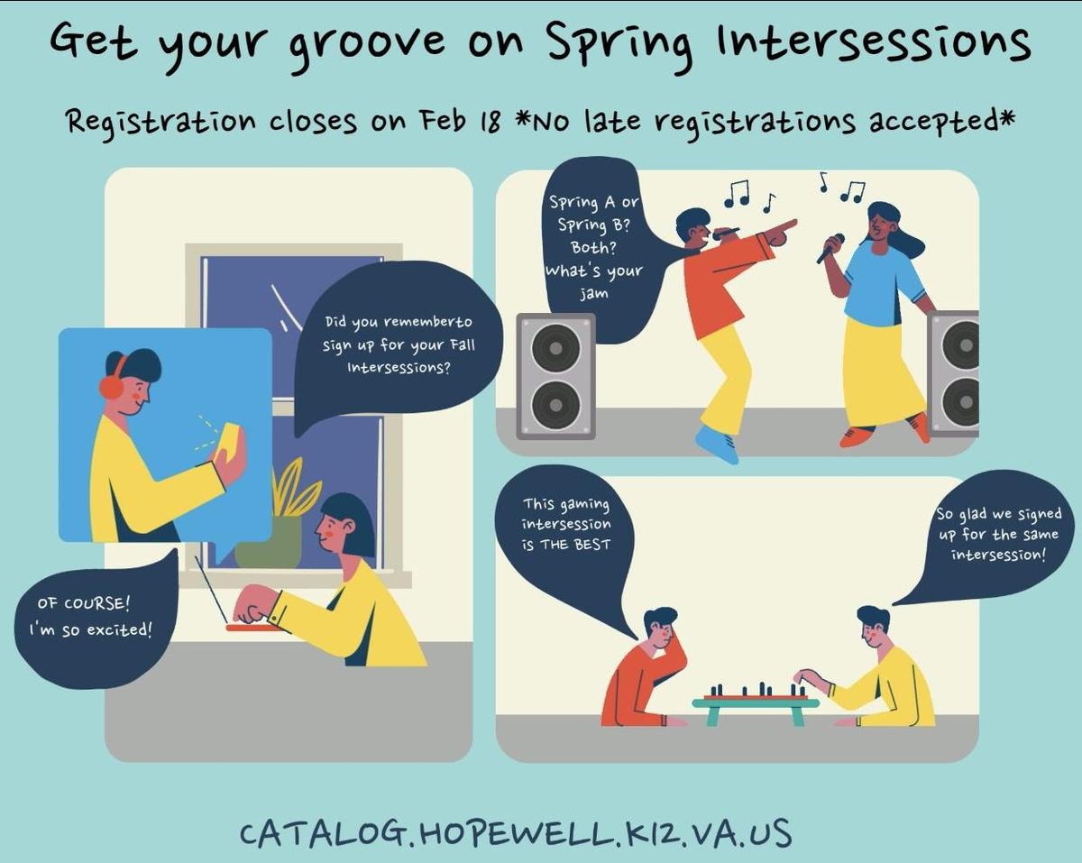 Intercession Courses are offered PreK-12, are free of cost, transportation and food are provided, and there are a lot of amazing courses to choose from, with hands-on activities, field trips and memory-making experiences planned. To see available courses and register, please visit the Hopewell City Public Schools' website. Registration for Spring course will end on Friday, February 18th at 11:59pm. If you need any assistance, please reach out to us at the school board office. We can't wait to see you! https://catalog.hopewell.k12.va.us/courses/intersession
