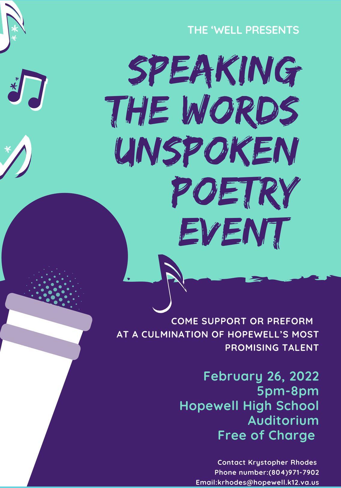 The 'WELL Presents: Speaking the Words Unspoken Poetry Event