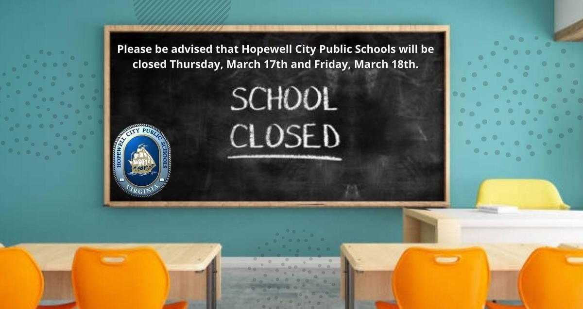Hopewell City Public Schools will be closed on Thursday, March 17th & Friday, March 18th