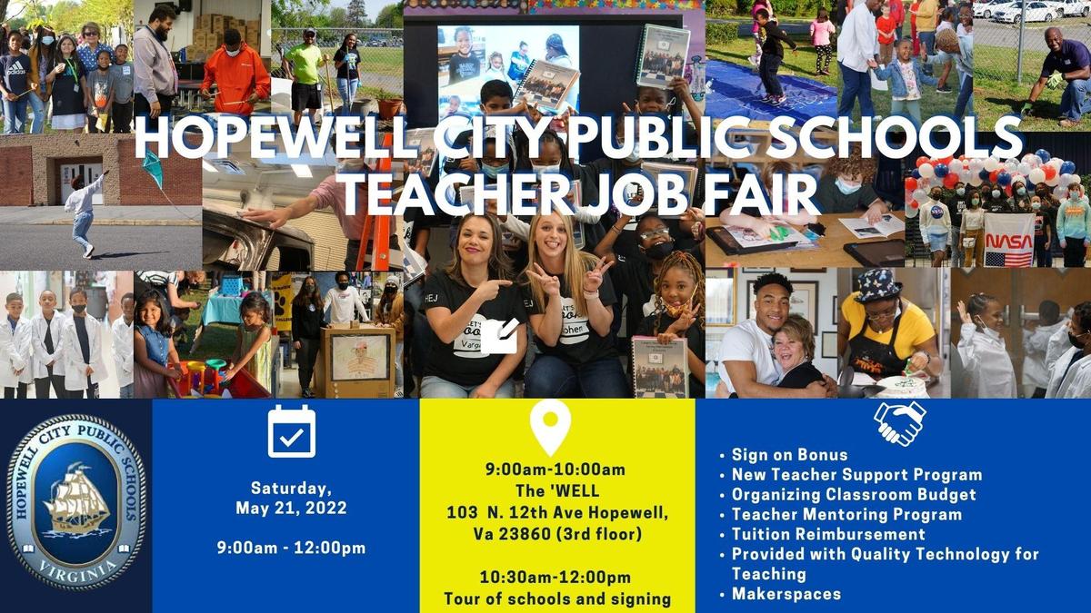 Hopewell City Public Schools will conduct a Teacher Job Fair on Saturday, May 21st