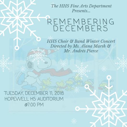 HHS Choir and Band Winter Concert Hopewell High School Band and Choir Departments will be holding their annual Winter Concert on Tuesday, December 11th at 7:00 PM (weather permitting). All are welcome! Print