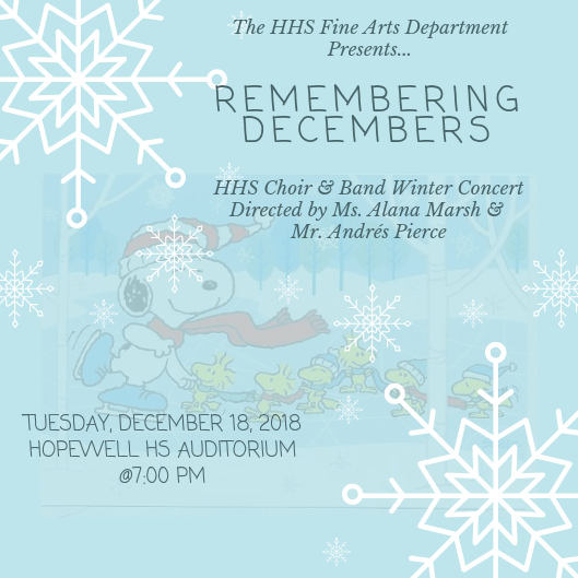 HHS Chorus and Band Winter Concert Rescheduled Join the award-winning HHS Band and Chorus for their rescheduled winter concert on Tuesday, December 18th at 7:00pm. #hopewellmagic Print