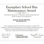 Durham School Services received an Exemplary School Bus Maintenance Award by the Missouri Department of Elementary and Secondary…