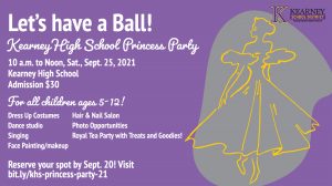 KHS will be hosting a “Princess Party” from 10 a.m. to noon on Saturday, Sept. 25 at the high school, which is located at 715 E. 19th St. The party is for children ages 5-12.