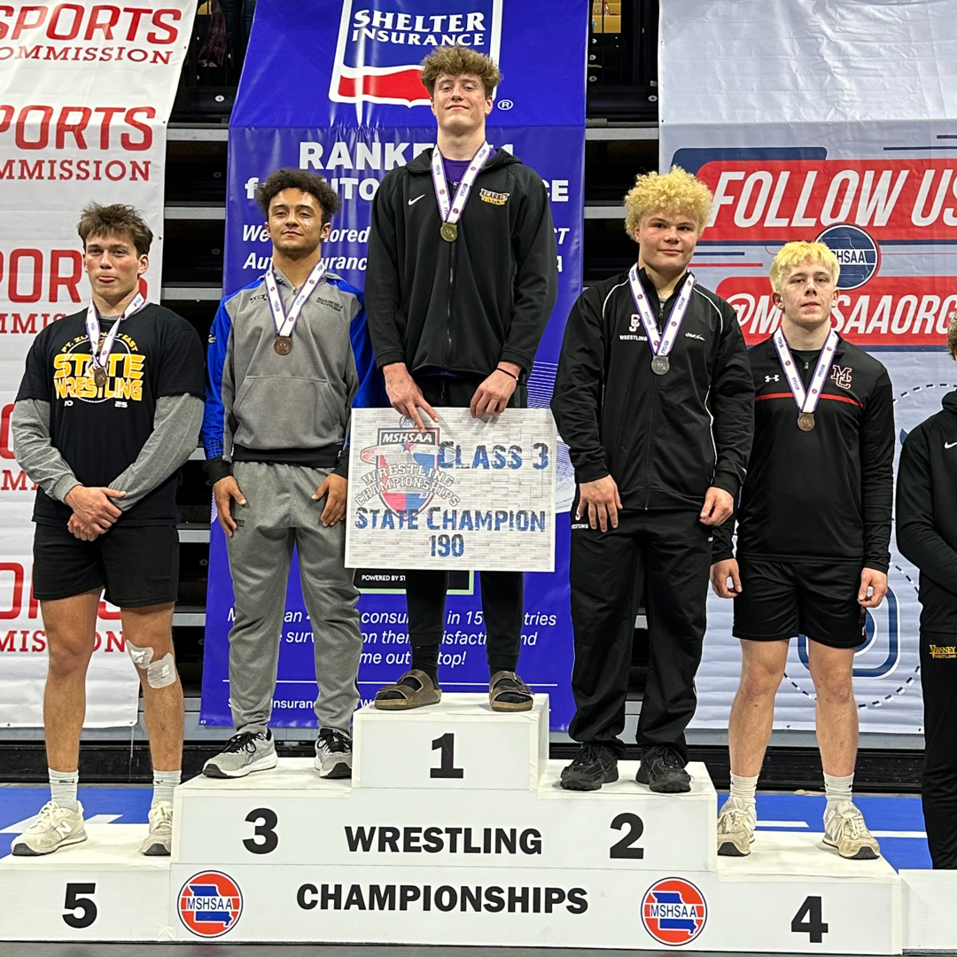 The senior Bulldog went out on top. Ryder finishes his career as a four-time state finalist and three-time state champion with over 150 career varsity wins. He won all of his matches by bonus points including his finals match with a major decision leaving no doubt he is one of Missouri’s best this year.