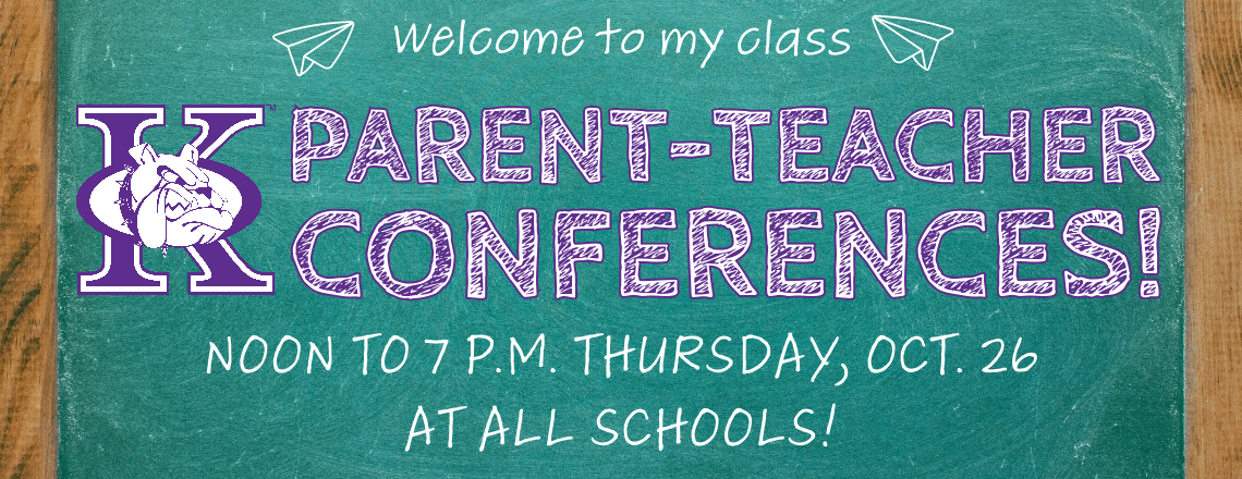 Parent-Teacher Conferences will be held from noon to 7 p.m. on Thursday, Oct. 26 at our schools. There will be no school that day or on Friday, Oct. 27.