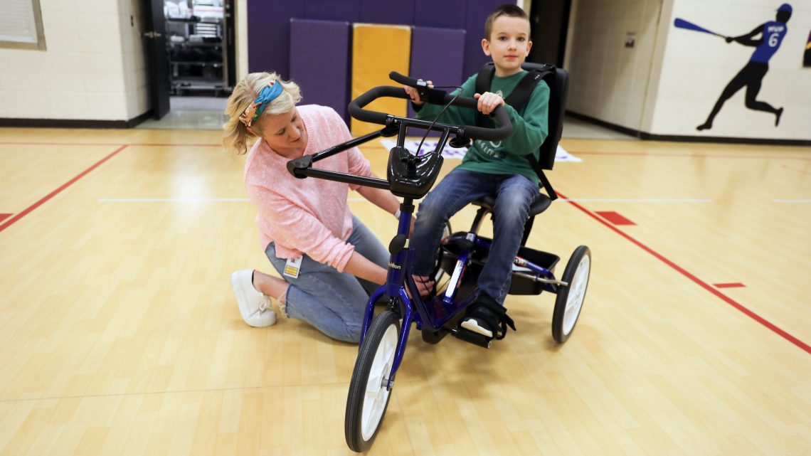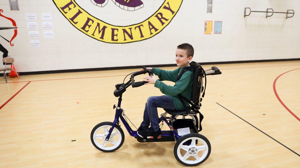 A charismatic third grader at Hawthorne Elementary School, Gunnar is just one of many students with disabilities who are already benefitting from a specialized adaptive bike purchased with grant funds provided by Variety KC. He spun around the school gym and smiled wide when asked if he was having fun.