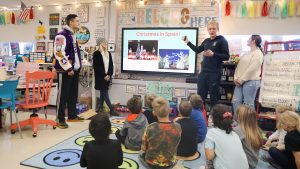 Beth Pickle’s second graders at Kearney Elementary learned about how Christmas is celebrated in Spain and then sang the traditional “Feliz Navidad” song in Spanish; that was followed by a lesson on the names of various animals in German and how they sound in that language. Similar scenes played out at Hawthorne, Dogwood and Southview elementary schools.