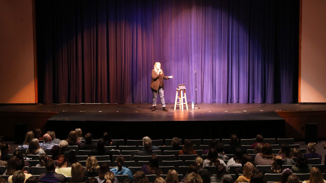In addition to the PD sessions, KSD staff members also had a chance to enjoy lunch together from a fleet of food trucks lined up in front of the high school’s main entrance, another detail overseen by Ms. Stewart and Ms. Frick. The camp ended with staff enjoying a one-hour routine by Kansas City-area comedian Rayne Ethetton in the KHS auditorium.