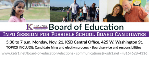 Kearney, Mo., November 8, 2022: The Kearney School District Board of Education (BOE) will be hosting an informational session for individuals interested in filing as Board candidates on the April 2023 municipal election ballot.