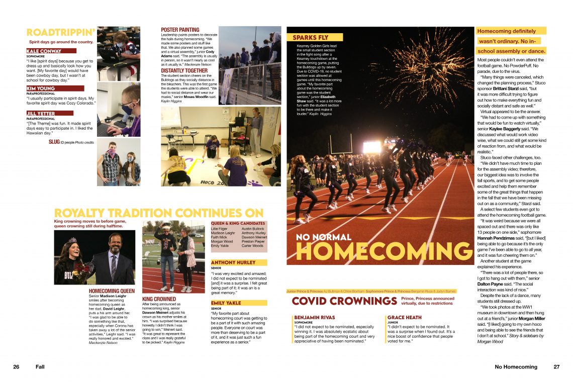 “We had kids only coming in two or three days a week,” Morgan said. “It was hard to find the time when you had to get students out of class on certain days, or you had to hope they would answer your emails to get certain spreads done, to get certain photos with captions.”