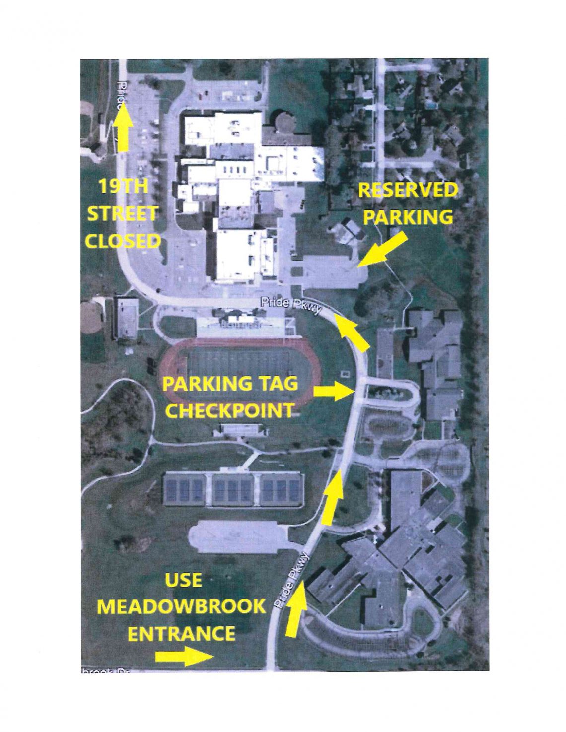 *Parking passes must be placed on the rearview mirror facing forward for access. The parking lot is accessible only from the Meadowbrook (Southview Elementary side) entry.