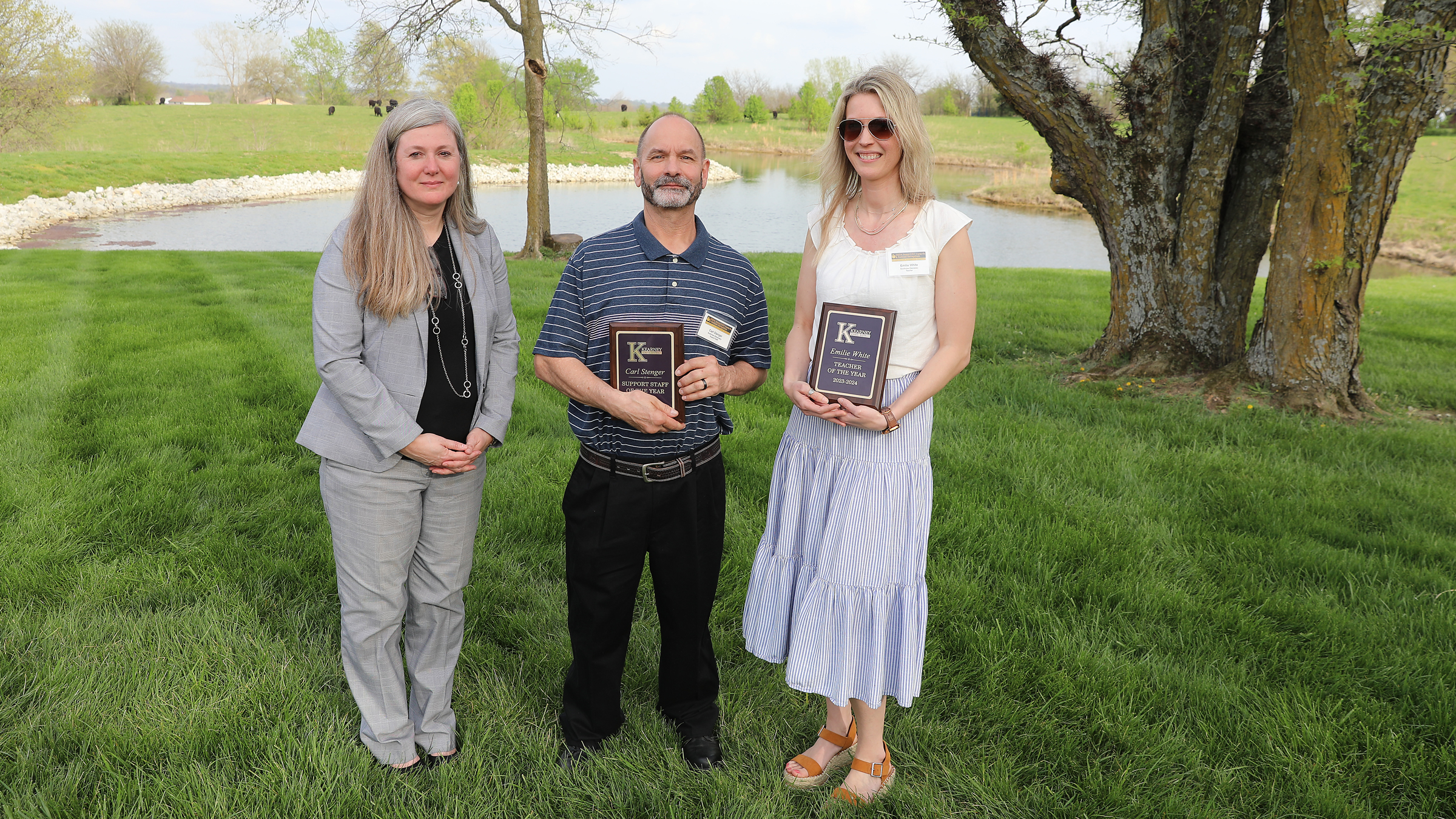 The event kicked off with a reception amid the site’s bucolic farm setting for the nine school-level Teacher of the Year Award winners, 10 school-level Support Staff of the Year of the Year Award winners, and the nine KSD employees who will be retiring at the end of the school year, plus Mrs. Thomas and a representative of Reed Portrait Group.