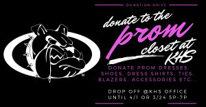 KHS staff have organized a Prom Closet for students this year and are seeking donations from the community. The closet will be a free resource for any KHS student needing help finding something to wear for prom. Organizers are asking for donations of prom dresses, shoes, accessories, suits, dress shirts, ties, etc.