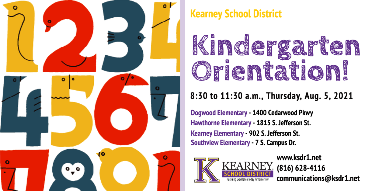 The 2021 KSD Kindergarten Orientation will be held from 8:30 to 11:30 a.m. on Thursday, Aug. 5 at the following locations:
